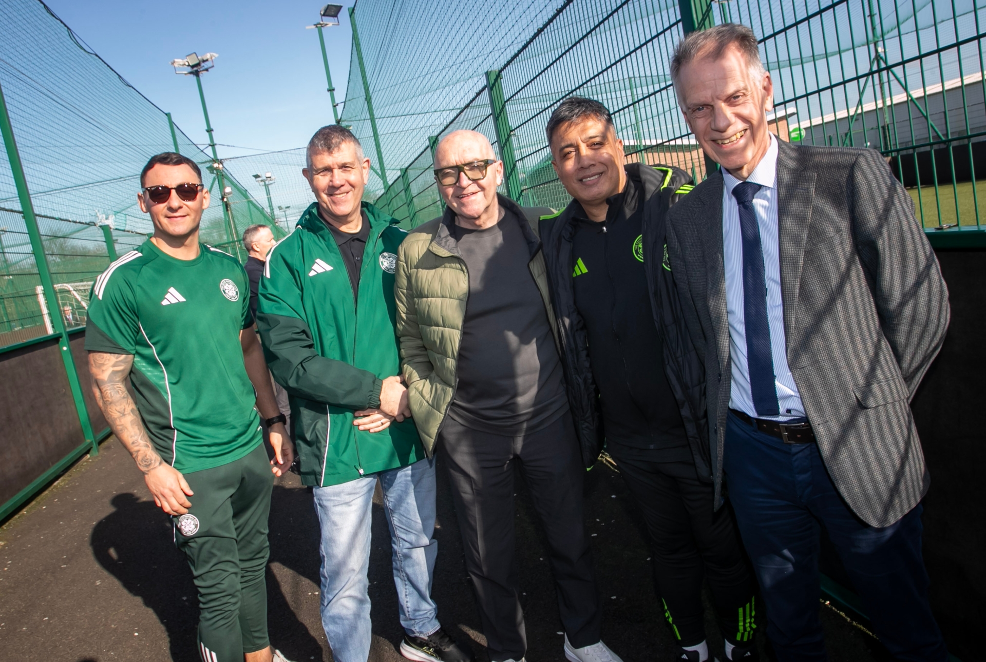 Glasgow Celtic star Bobby Petta pictured at Thursday's Celtic FC Foundation's Community Football event at Bay Road, with from left, Sean Thornton, Gary Stannett, Tony Hamilton, CEO, Celtic FC Foundation and Michael O'Donnell, Chief Executive Officer, Choice Housing.