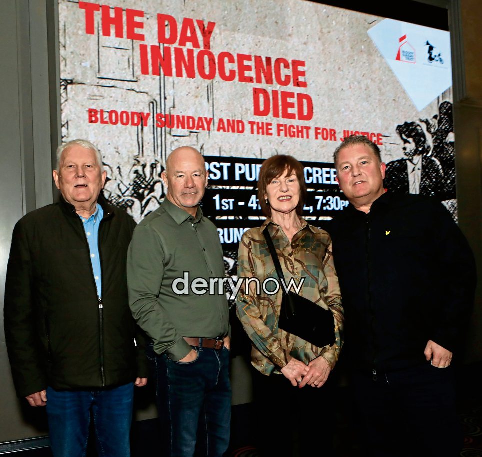 Group pictured at the preview screening of new film: ‘The Day Innocence Died: Bloody Sunday and the Fight for Justice’ in Brunswick Moviebowl. From left, are John Shiels, John McKinney, Stella Shiels And Ciaran Shiels.