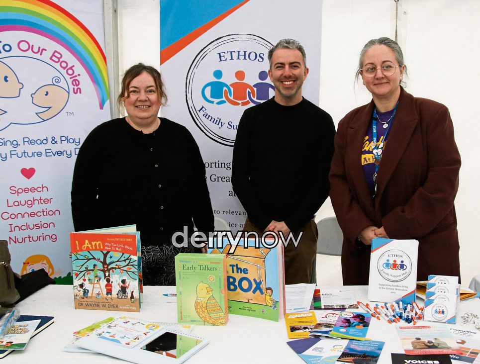Deirdre Kelly, Talking to Our Babies, Marty Daly and Ruth Carr, Ethos Family Support Team pictured at Skeoge Community Health Fair. (Photos - Deirdre Heaney, nwpresspics)