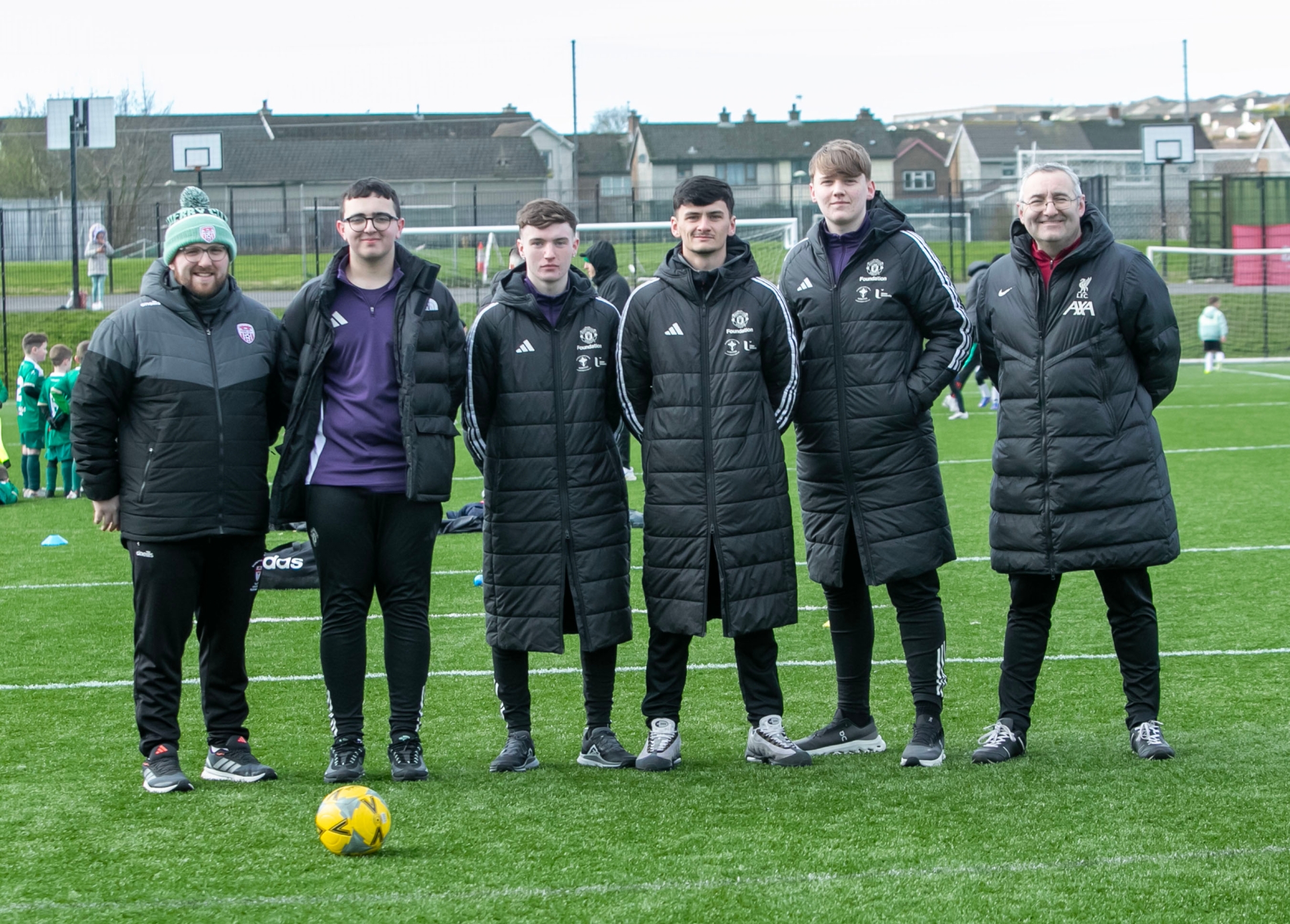 Mr. Gerry Beattie, Vice Principal, St. Joseph's Boys School (pictured on right) with some of the volunteer referees at the Sean O'Kane Memorial Cup on Saturday. (Photos: Jim McCafferty Photography)