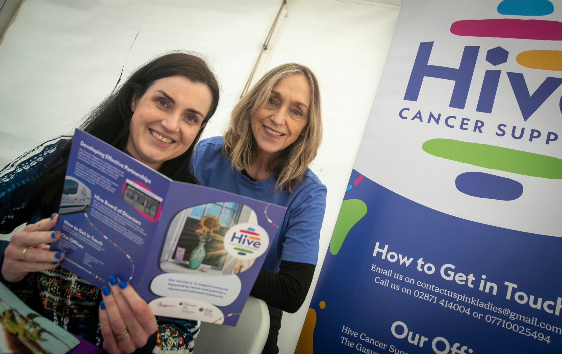 Marianne Flood and Pat McGuinness pictured at hte Hive Cancer Support stall during Friday's Skeoge event. (Photos: Jim McCafferty Photography)