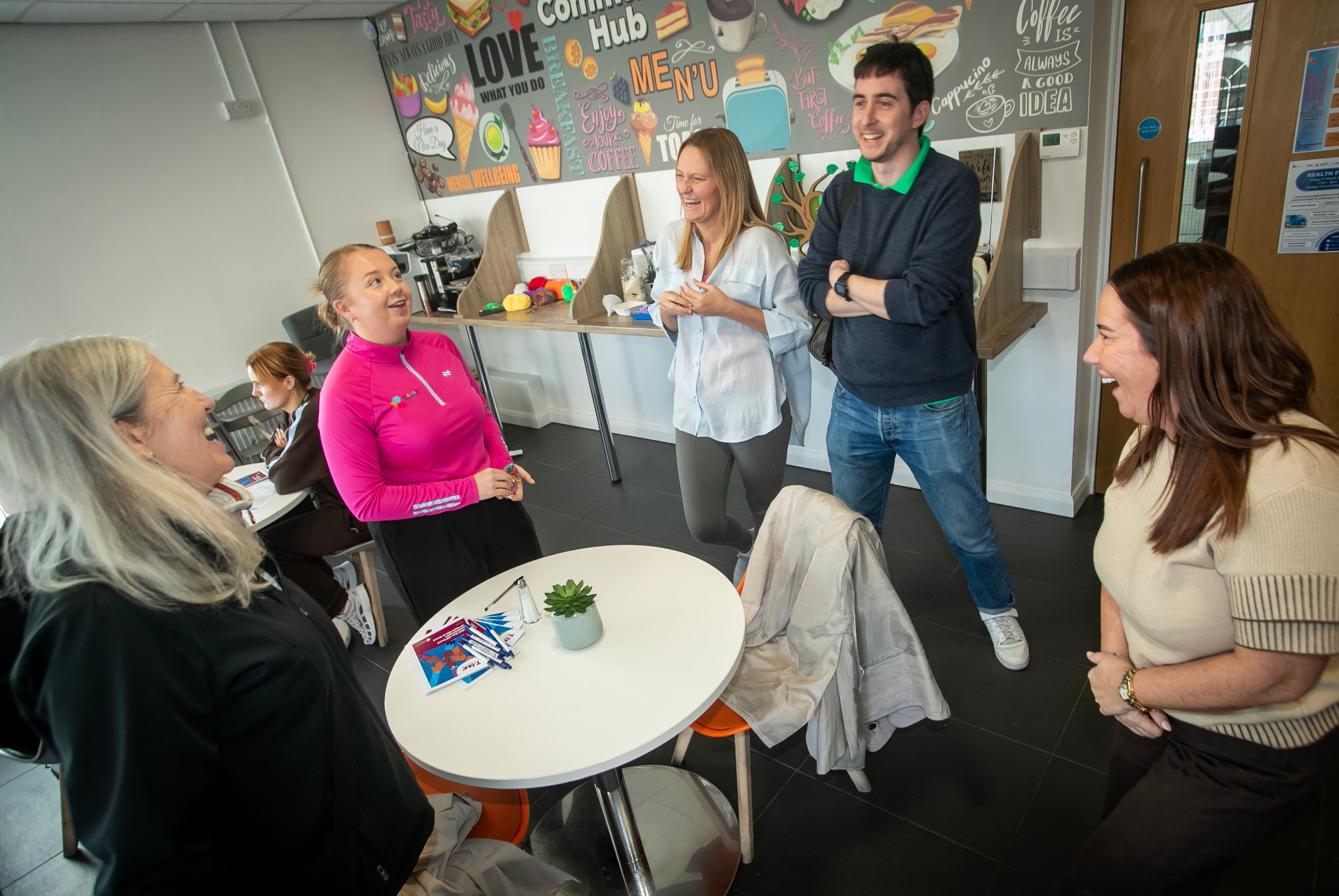Sharing a joke during the Feel Good Friday' event at Skeoge.