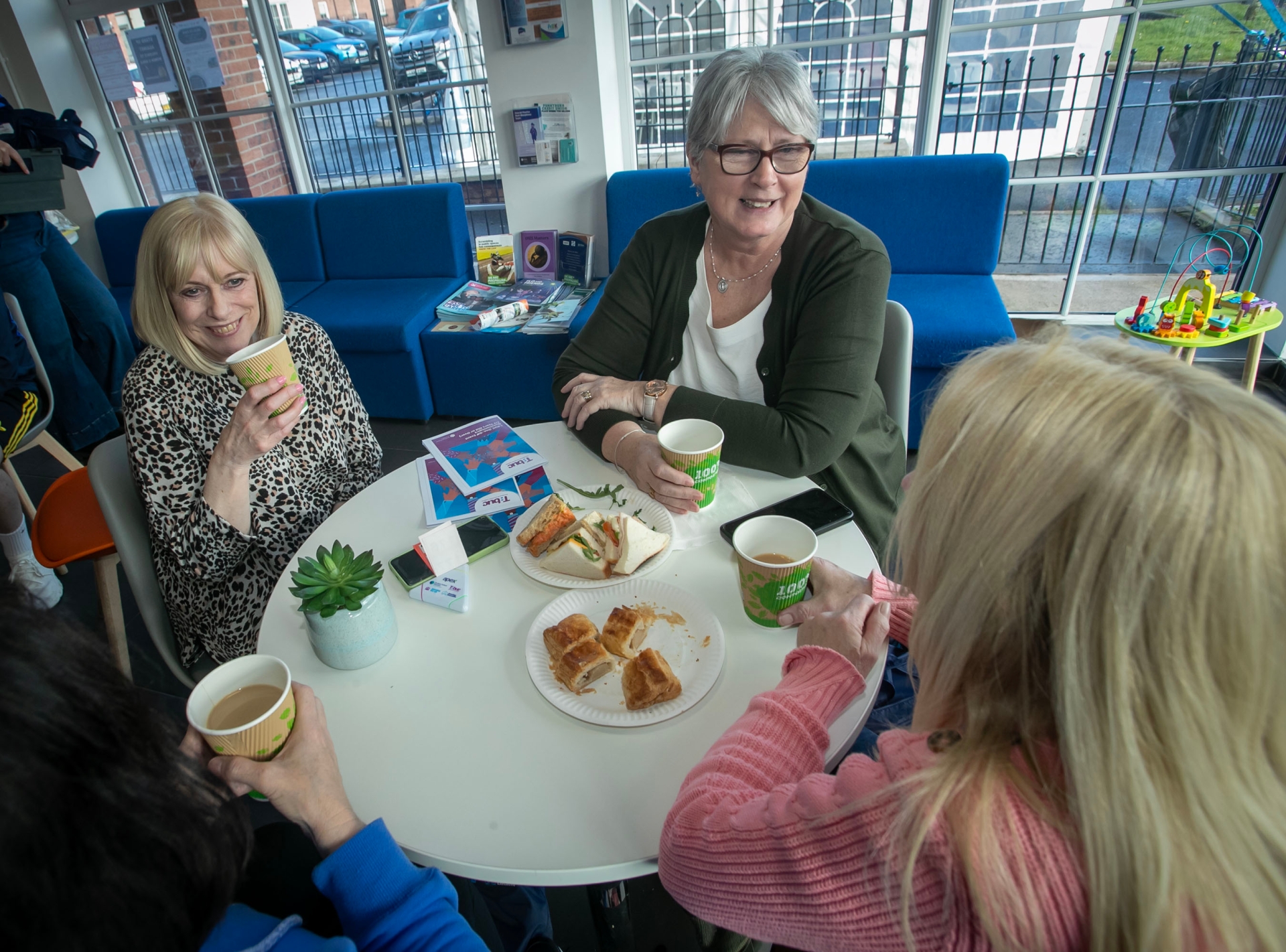 Taking time out for a coffee and a chat at the Feel Good Friday event.
