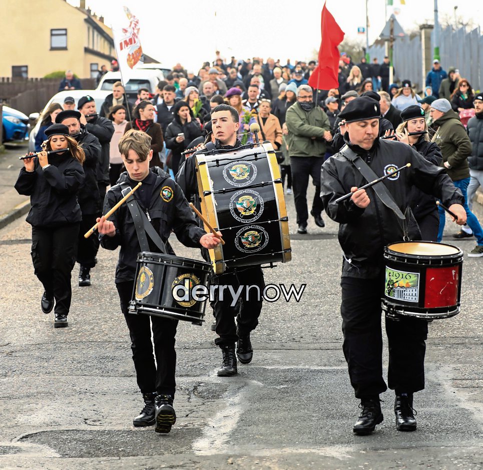 A flute band at the Saoradh Easter Commemoration making their way to City Cemetery.
