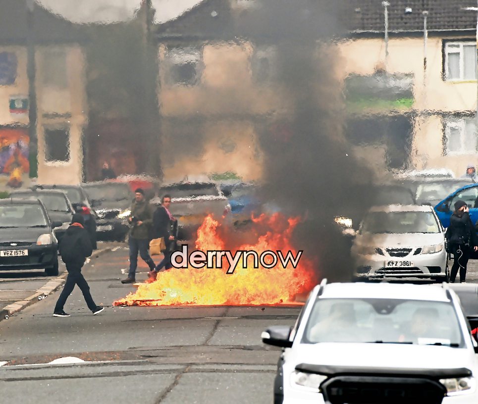 Fire on the road at Central Drive following the Saoradh Easter Commemoration.