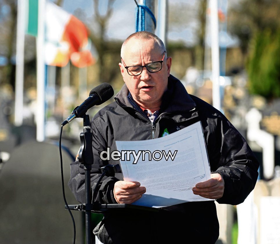 Paul Duffy reads The Proclamation at the Republican Sinn Fein Easter Commemoration held at the Republican plot, City Cemetery. (Photos - Tom Heaney, nwpresspics)