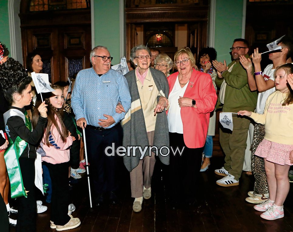 Lillian Moore, Irish Commission Dancing teacher celebrating her 100th year held on the final night of Feis Dhoire Cholmcille in St. Columb's Hall.