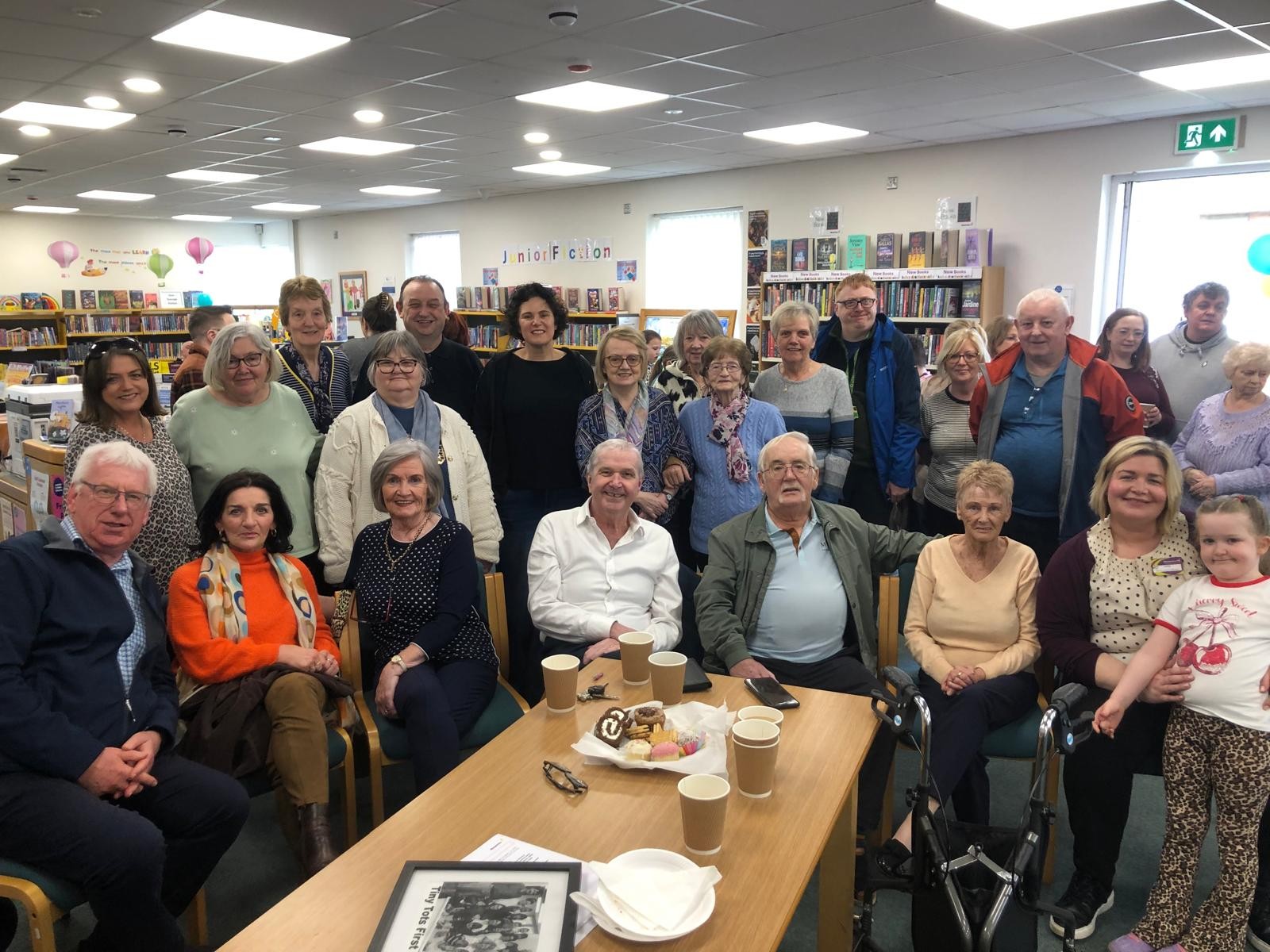 Alderman Janice Montgomery UUP, Clare Hanna SDLP Leader, Councillor Declan Norris and MLA Mark H Durkan with friends and customers of LNI and Strathfoyle Library.