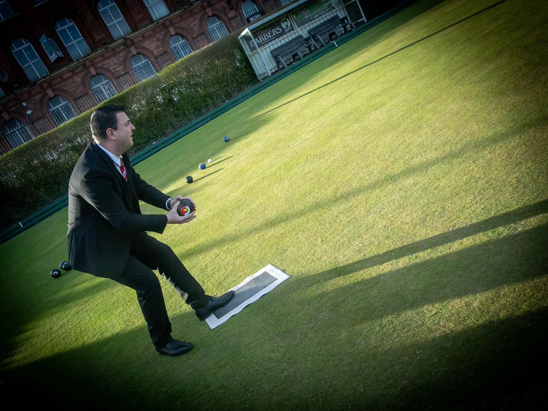 PICTURED BELOW: Mayor McHugh showing off his bowling prowess during Wednesday's visit to Brooke Park Bowling Club.
