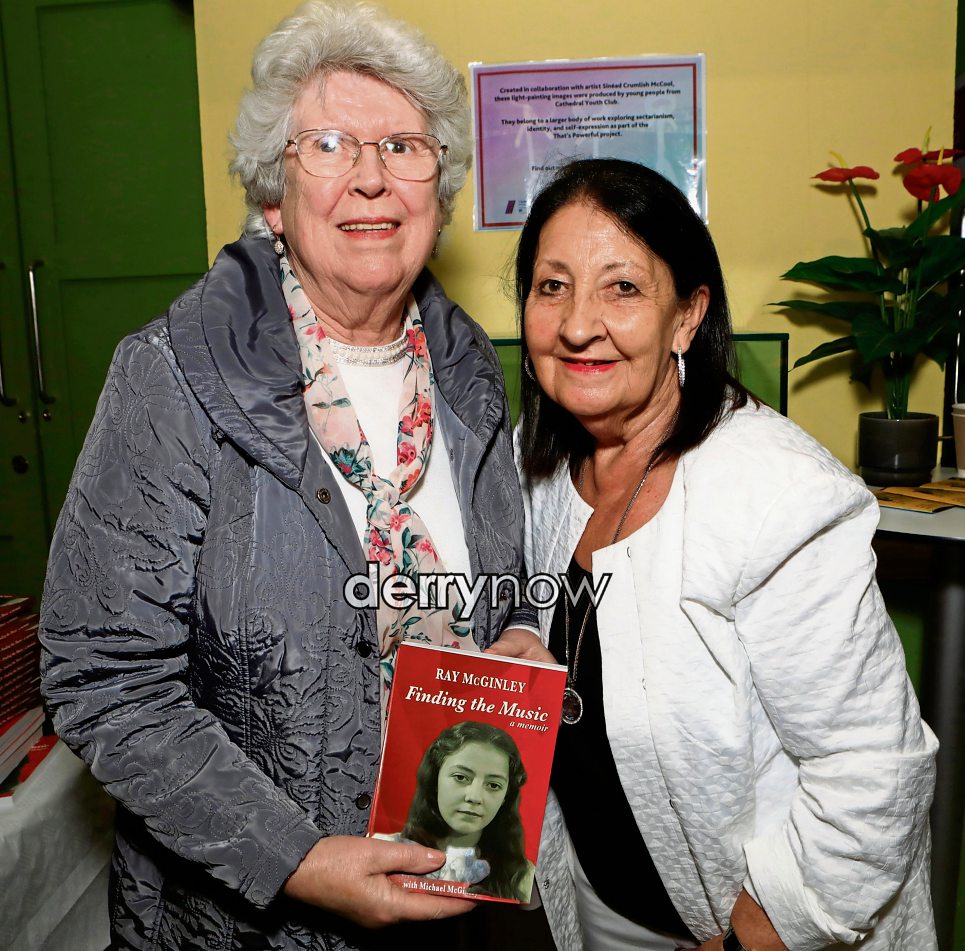 Ray McGinley at her book launch “Finding the Music” a memoir with her cousin Anne McDermott.