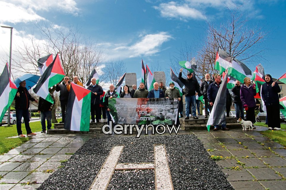 Group of Republican Ex-Prisioners take part in the Palestinian Prisoners Day vigil at the Hunger Strike monument, Bogside. (Photos - Deirdre Heaney, nwpresspics)