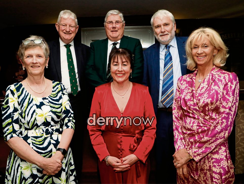 Group pictured at the City of Derry Rugby Football Club annual dinner held in the Clubhouse at Judges Road. Front from left, Doreen Fleming, Jackie Badmington and Hilary Ducan. Standing, from left, Ken Duncan, George Fleming and Philip Badmington.