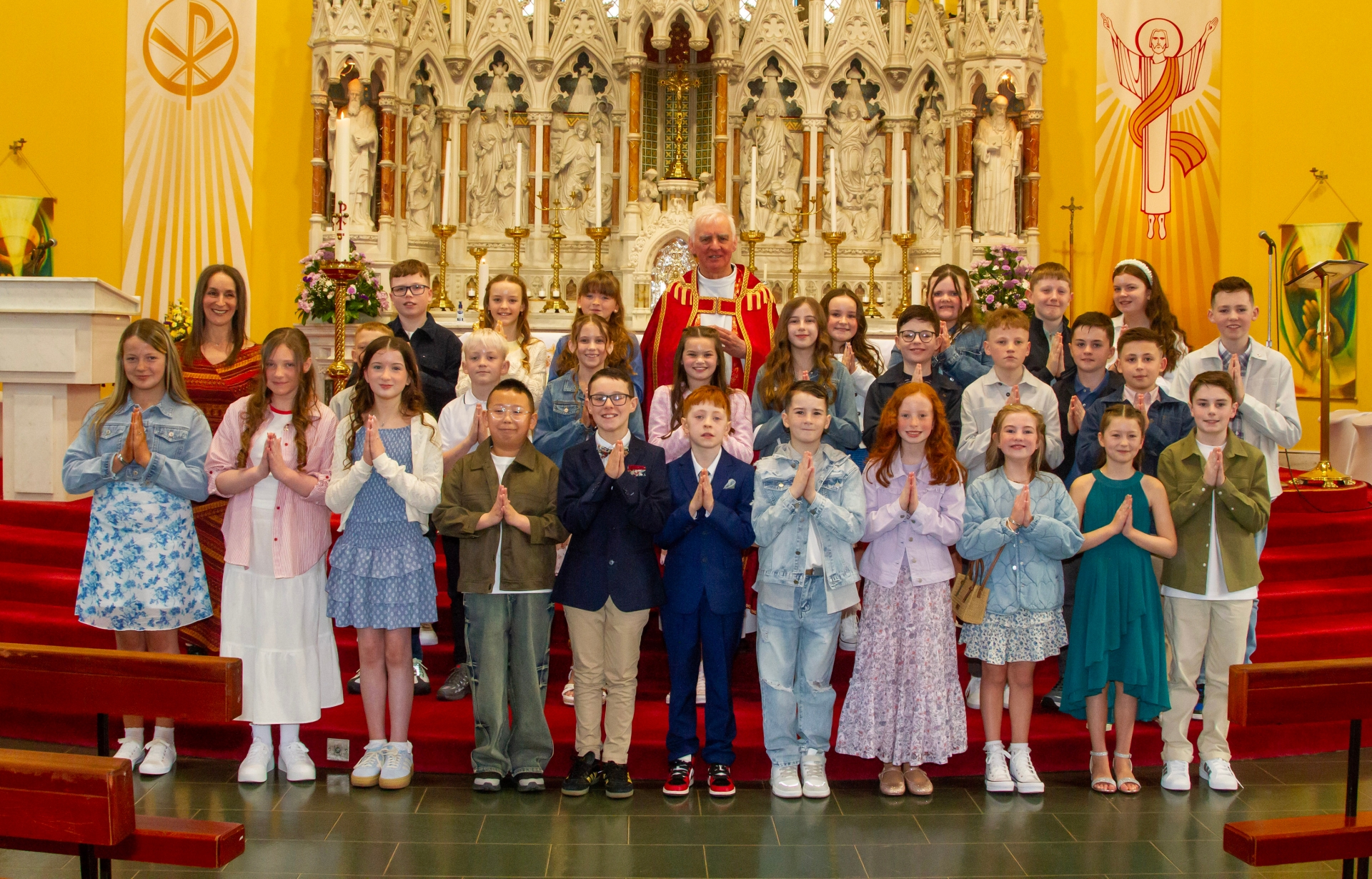 Mrs. Forbes' P7 class from Good Shepherd Primary School who received the Sacrament of Confirmation from Fr. Michael Canny at St. Columba's Church, Waterside on Friday last. (Photos: Jim McCafferty Photography)
