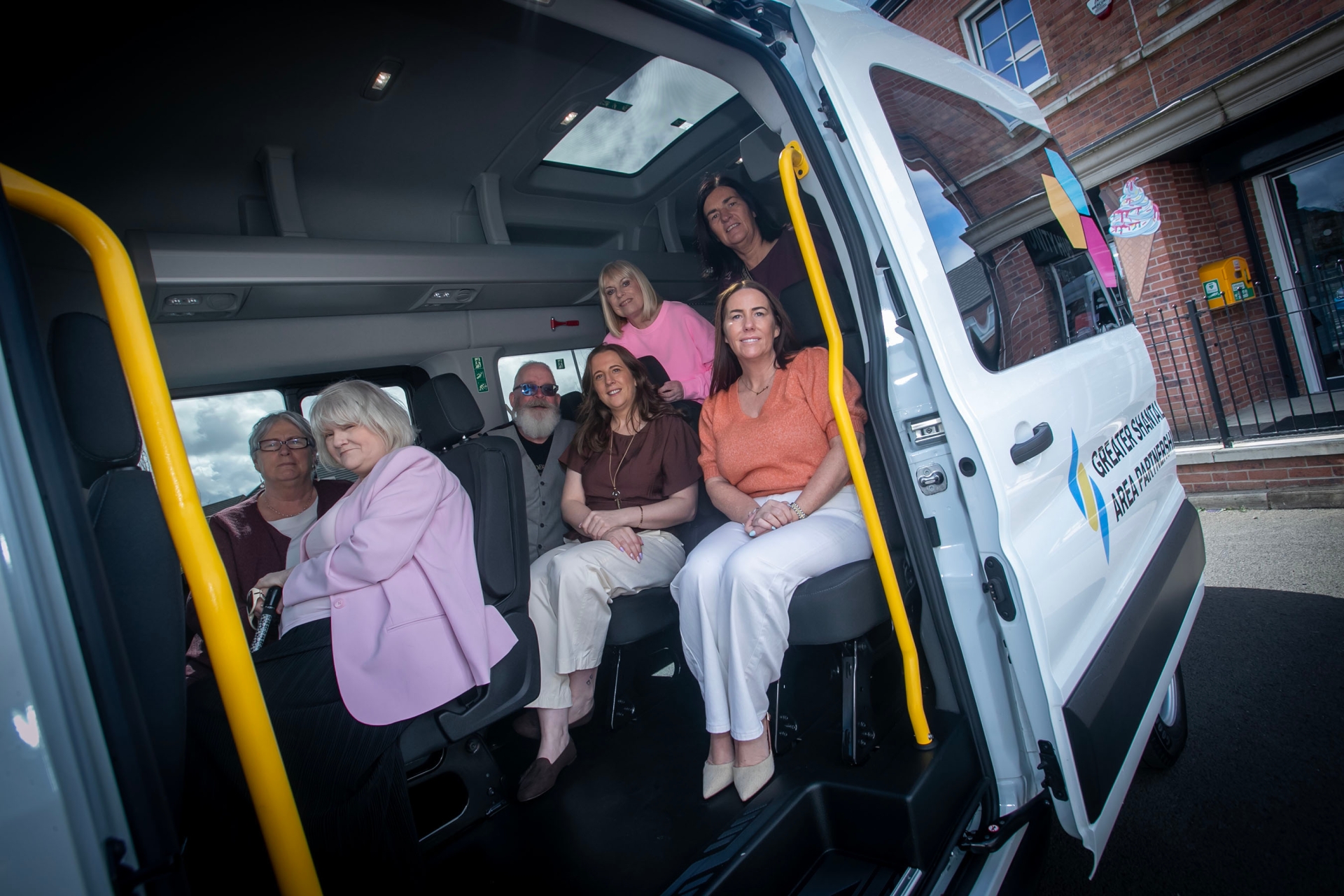 Some of the first ladies to officially travel in the new minibus get ready for the off on Friday.