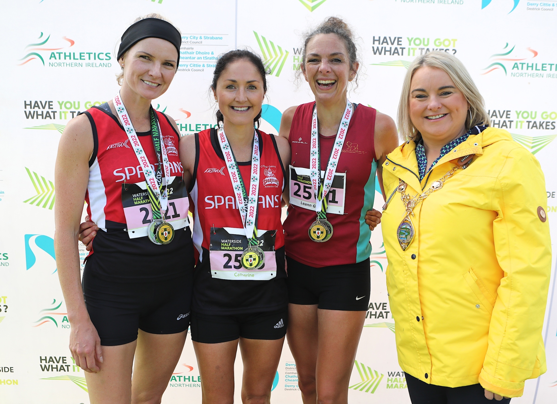 Mayor Sandra Duffy with Catherine Whoriskey, 1st lady home, Ciara Toner, 2nd, and third Leann Gibson. (Photo - Tom Heaney, nwpresspics)