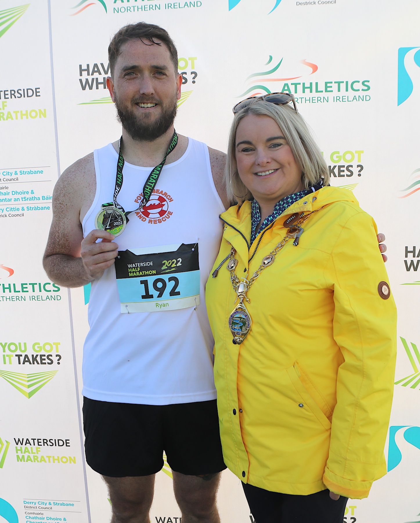 Mayor Sandra Duffy with Ryan Dillon who is doing 10k perday for 30 days in aid of Foyle Search & Rescue, Foyle Prevention and Arc. (Photo - Tom Heaney, nwpresspics)