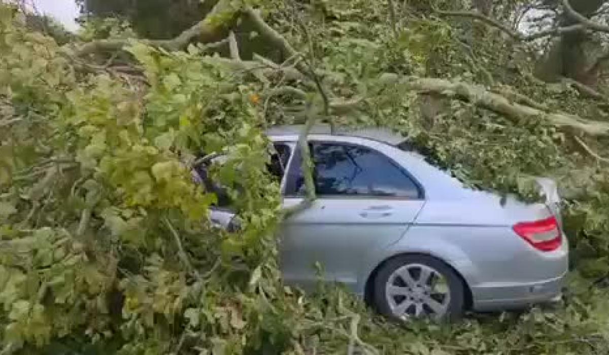 A County Derry family had a lucky escape when a tree hit their vehicle in Limavady during the midst of Storm Amy.