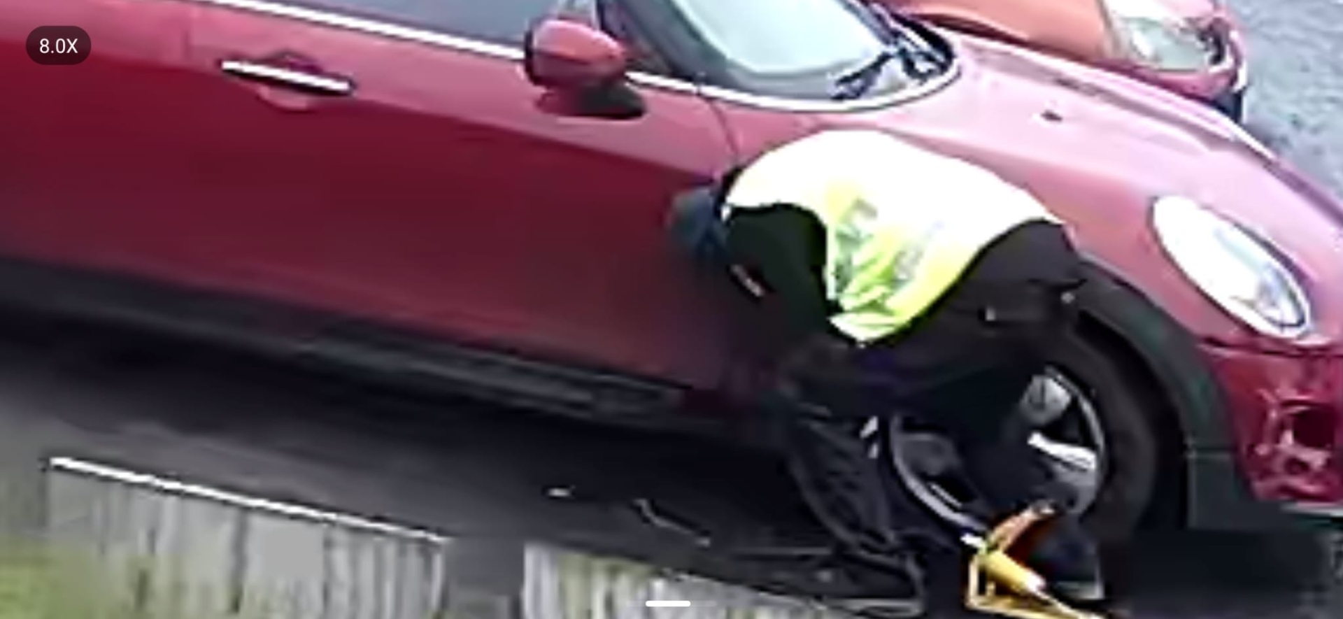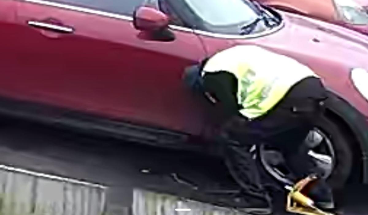 CCTV footage from a nearby property has since emerged showing a man walking between cars and kneeling down beside the vehicles' tyres.