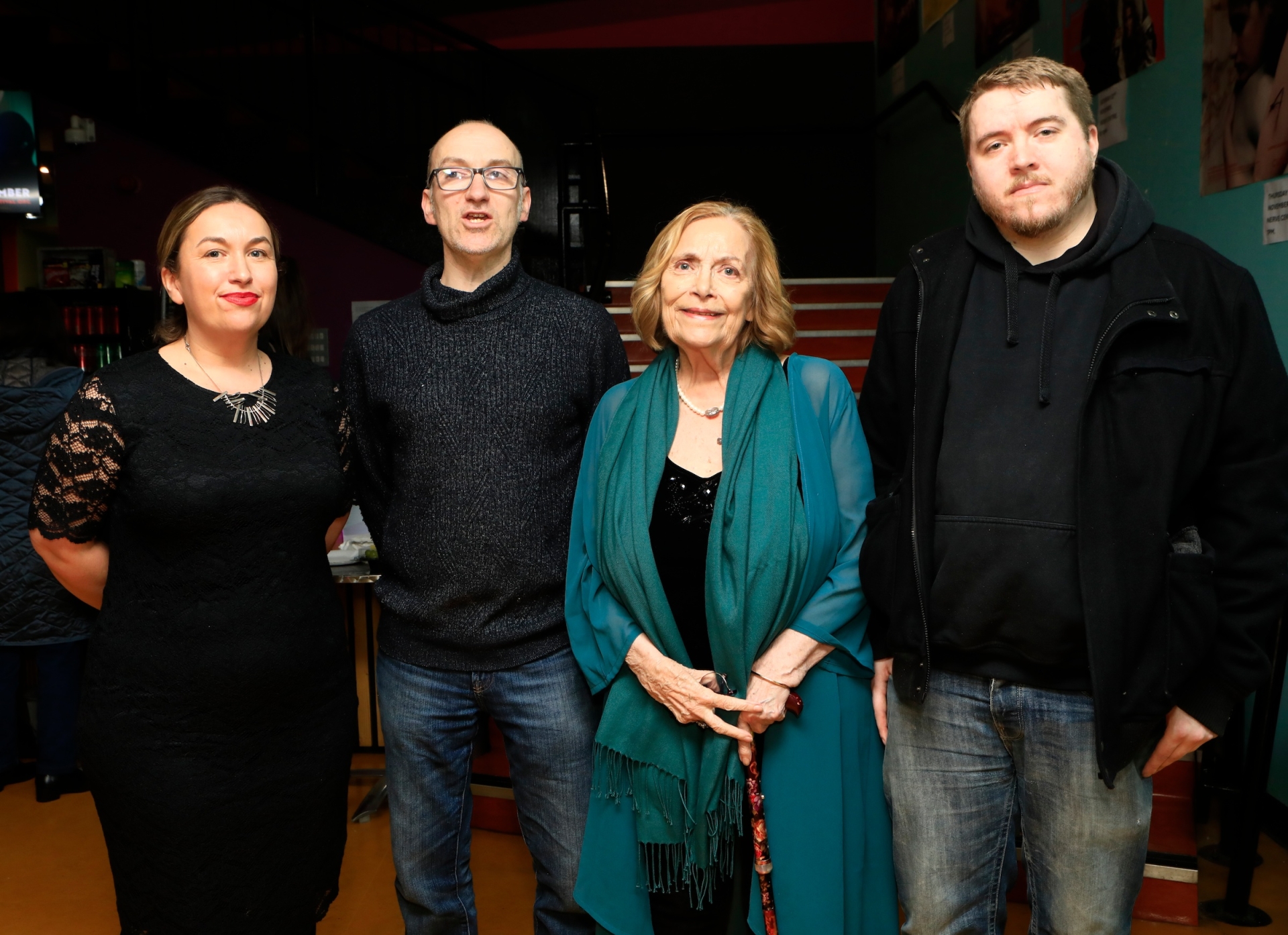Jason Bonner, director at the Foyle Film Festival's 'Eoin's Lost Tapes' held in the Nerve Centre, with Eoin's mother, Pat, sister Sally and brother Thomas.
